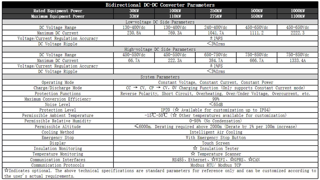 Circuit structure adopt three-phase PWM rectification and inversion + DC/DC bi-directional conversion dual-stage circuit, enabling wide-range DC voltage output, high control precision, and fast dynamic response.