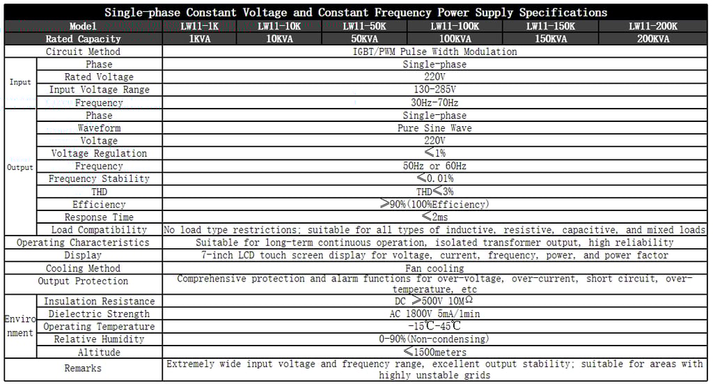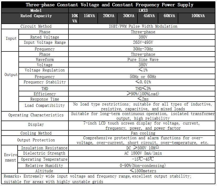 Our company's LW series voltage and frequency stabilizing power supply is specifically designed and developed for unstable grid supply voltage and frequency, severe voltage distortion, and comprehensive voltage quality issues such as flicker and sag, to ensure the operation of precision electrical equipment with high grid requirements.