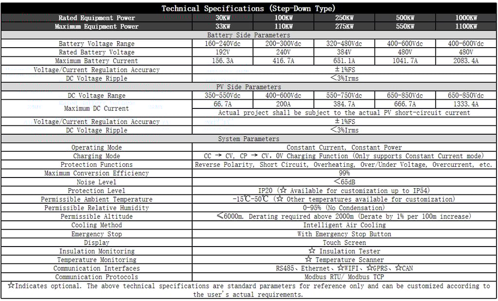 Supports constant voltage, constant current, and constant power charging, with parallel connection capability.