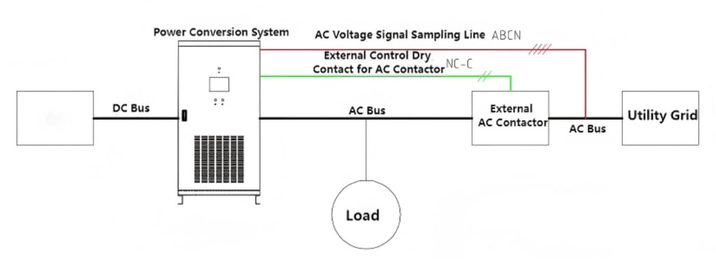 Electrical Schematic Diagram-Single-phase output system topology diagram of PCS AC side (with external AC contactor)