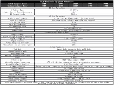 Adjustable output power factor (-0.8 leading to 1.0 to +0.8 lagging) with customizable reactive power compensation.