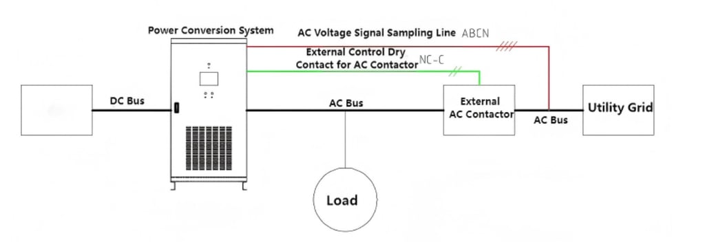 Electrical Schematic Diagram-Single-phase output system topology diagram of PCS AC side (with external AC contactor)