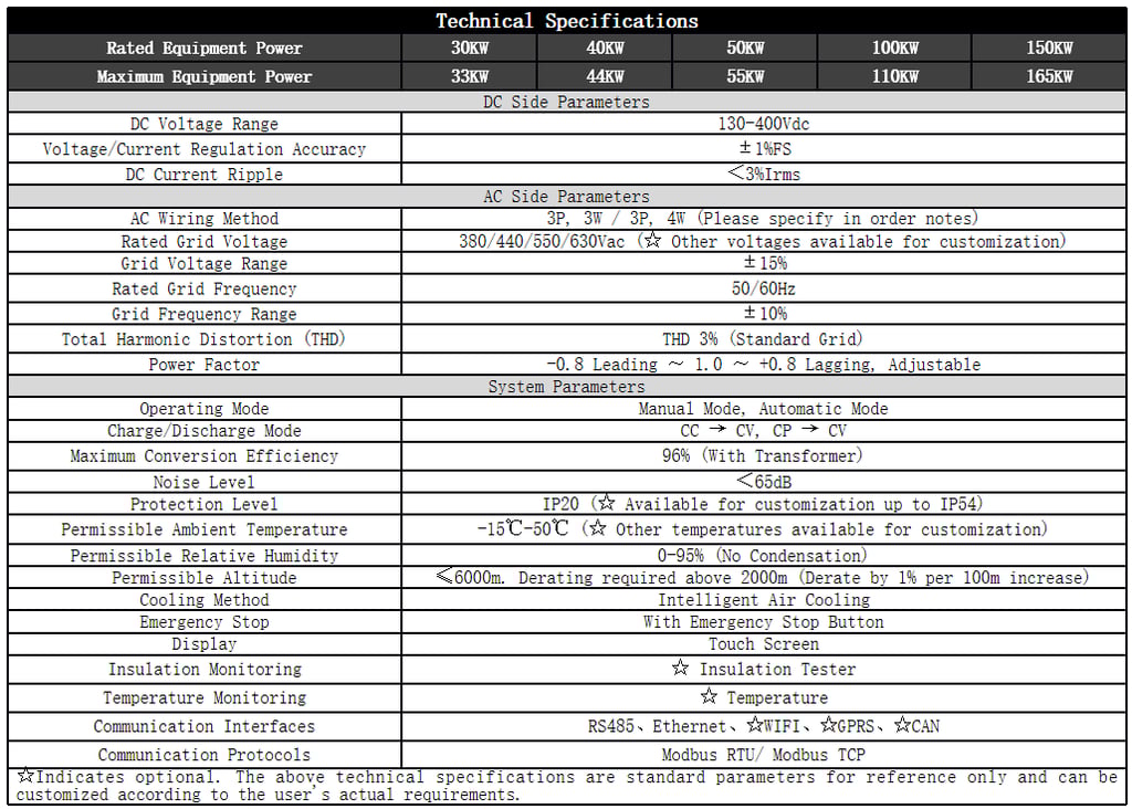 Adjustable output power factor (-0.8 leading to 1.0 to +0.8 lagging) with customizable reactive power compensation.